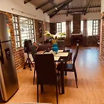 تحتوي فيلا Casa Campestre En Sogamoso Boyaca على المطبخ كامل التجهيز مع محمصة الخبز وأدوات المطبخ والآنية الزجاجية. - ❓